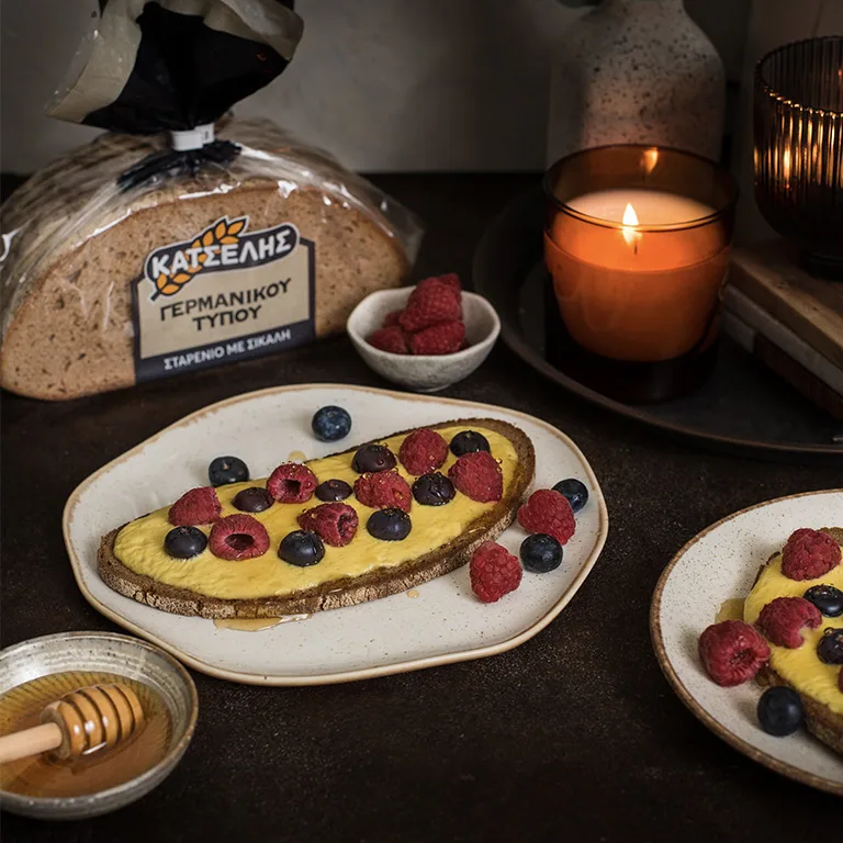 Η βάση μας εδώ κάνει τη διαφορά: Κατσέλης Γερμανικό Σταρένιο με Σίκαλη. Η πλούσια, μεστή γεύση του δένει μοναδικά με την ελαφριά κρέμα και τα φρούτα, δημιουργώντας ένα αποτέλεσμα που θυμίζει εκλεπτυσμένο γλυκό.
